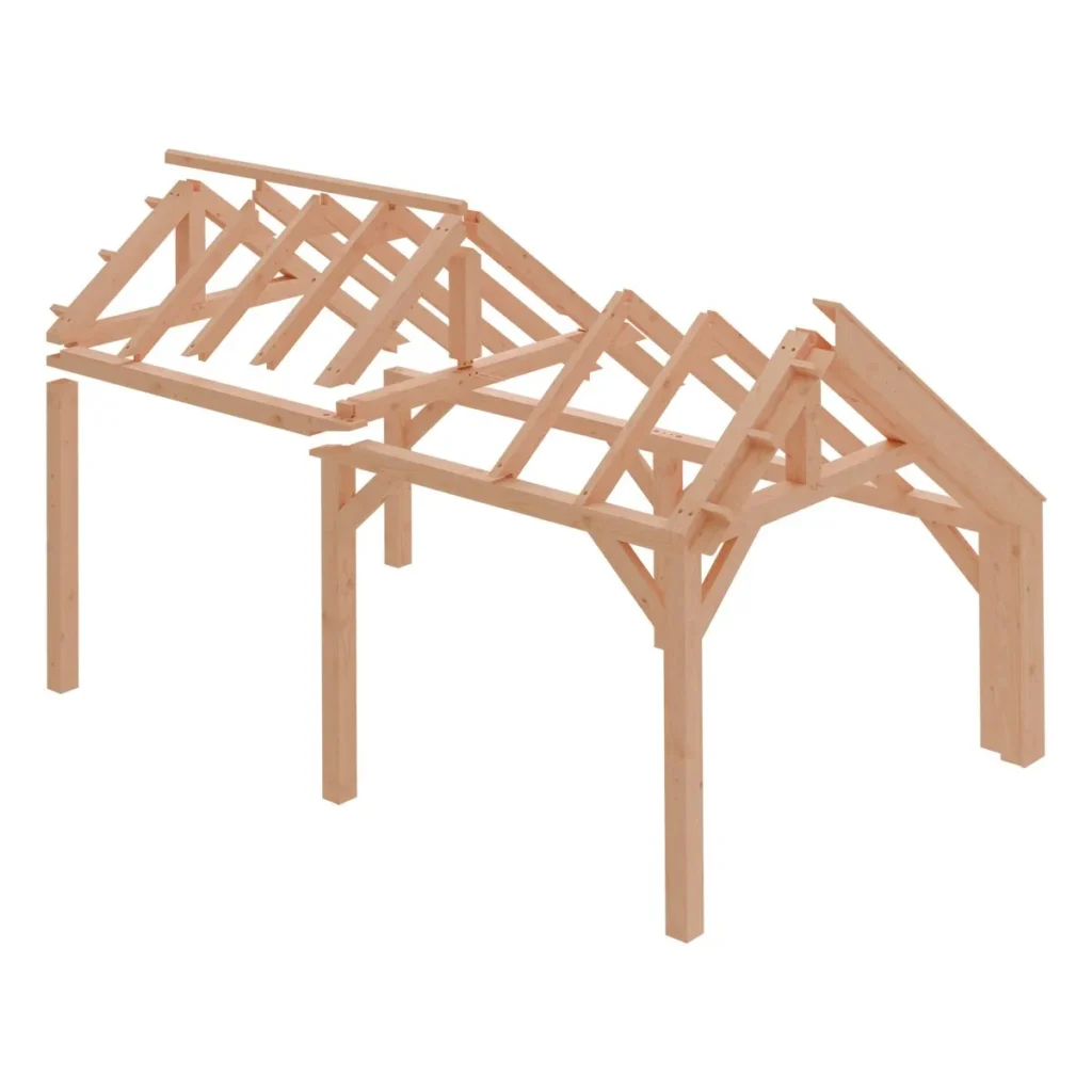 De constructie wordt deels uitgevoerd met pen-en-gatverbindingen en zwaluwstaartverbindingen. Dat zorgt voor een stevige en duurzame basis.